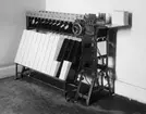 MF upptar materiel för posttjänsten som tillhandahålls av Postverkets Centralförråd (IKC). Foto april 1970. Cykelställ, utan tak, liggande och med plats för 5 cyklar.