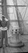 Bilden visar tre skeppsgossar som står i en vant på skeppsgossefartyget Jarramas.