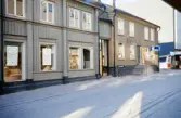 "Snus-Lundgrens" m.fl. hus vid Sandgärdsgatan. Färgfoto ca 1970.