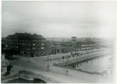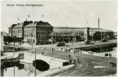 Malmö järnvägsstation med Hamnkanalen i förgrunden.