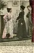 Maria Berg och jungfrun Augusta Johansson iförda kläder sydda av fröken Zetterman, Axvall. Fotografen Maria Berg född Flach. Kapten Sigge Flachs samling, Prinshaga, Axvall.