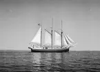 Helbild av modell av tremastskonaren BALTICA, byggd i Sjöhistoriska museets modellverkstad av Stefan Bruhn och Jan Claesson.