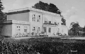 Processionen med likvagn på Storgatan i Tromsö, flankerade av matroser med gevär över axeln. En stor folksamling följer processionen.