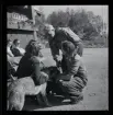 "Park-Nisse" Johan Erik Nilsson (1879-1947) pratar med två kvinnliga turister och deras hund.