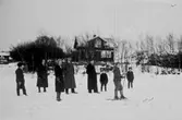 Skid- och sparkåkning i Brogårdens trädgård. Album. T. F.= Tekla Forssell. Postexpeditör Tekla Erika Charlotta Forssell. Född 1862 i Skara, död 1940 i Skara. Dotter till Nils Edvard Forssell och Maria Forssell (f. Torin). Syster till Karl Bror Jacob Forssell och Emma Walter (f. Forssell).