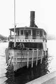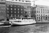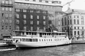 Hamnbild från Strömkajen i Sthlm. Foto 4.6 1969. Fartyg från v. m/s Tynningö, m/s Ramsö, m/s Havsörnen, m/s Sunnan, m/s Rödlöga, m/s Rånö.