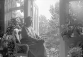 Blommor i kruka i hemmet, sannolikt hemma hos tonsättare Ruben Liljefors i Sverige