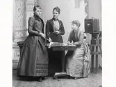 "Elevgruppen". I mitten står Mathilda Ranch med M. Nilsson från Ljungby t v och Emma Lundgren från Falkenberg sittande t h. Emma utbildade sig hos Mathilda i Varberg tills hon 1893 flyttade med sin bror Engelbrekt (också fotografikunnig) till Vetlanda där hon övertog Oscar Rylanders fotoateljé.
