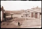 "Garage Friggagatan. Vy av sydvästra Gårda med bensinstation 26/3 1930."