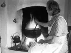 Text till bilden: "Dalslandstugan före flyttning, spis".
