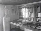 "1934. 24. Pontus Vikners barndomshem. Interiör af hans samlingar." "Kopia av Thorvaldsens Kristus. Dessa böcker och handskrifter förvaras numera på Bohusläns museum."