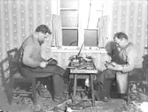 Vykort från förskolan i Stretereds skolhem (nuvarande Videgården), 1950-tal. Skomakerilära pågår i skomakeriet på källarplanet.