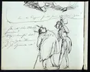 "Till fröken Augusta, ytterligare infördt ? ( Otydligt i originalet) 1879. Denne Hedin börjar bli ledsam! Revolutionens qvinnor 3:de delen". Tuschteckning av Fritz von Dardel, 1879