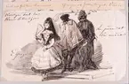 "Ett tak öfver hufvud det kan jag erbjuda! Ack i frökens öra, ljuft dessa ord ljuda!". Tuschteckning av Fritz von Dardel.