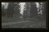 "Pepparkällan, Gimmersta, lantbrukare Larsson" Ett sällskap i en trädgård vid ett bord dukat med kaffe och kakor.