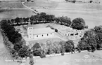 Flygfoto över Riseberga klosterruin och Riseberga Herrgård. Bilden tagen för brevkort. Förlag: E. & M. Kjell, Bokhandel, Fjugesta.