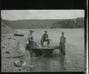 Text på montering i arkivet: Bottengarnen halas av laget från båten upp på bonden Ingels vagn och köras till torkplatsen vid Åkroken.