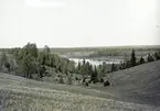 Kommunal nummer Asker-Odensbacken, ...i Stora Mellösa 17 mars 1967 En man klädd i svart rock och svarta byxor står och pekar ut över landskapet i Asker- Odensbacken. En kyrka syns i bakgrunden. Andra typer av byggnader syns även.