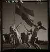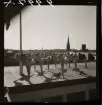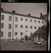 Rysk fotboll i Helsingfors mot Stockholms-kombinationen. Laguppställning på plan, publik i bakgrunden på arenans läktare.