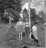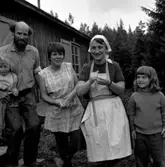Deltagarna i det första konfirmandlägret i Skaga, sommaren 1961. Skaga medeltida stavkyrka, riven 1825, var en känd offerkyrka; en rekonstruktion uppfördes 1957-58 efter Erik Lundbergs ritningar. Information hämtad i NE:http://www.ne.se/jsp/search/article.jsp?i_art_id=335527