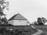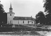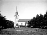 Storgatan med gamla kyrkogården vars stenmur borttogs på 1880-talet liksom de fyrkantiga murade grindstolparna med plåthuvar.
