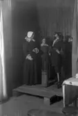 Det närmar sig premiär för Giv oss fred. Samlade runt en modell av skådeplatsen, från vänster: Rune Lindström (författare och regissör), Astrid Söderbaum (den första som spelat Malena Rödkåpa), Holger Eklöv (Arboga Lions), Sten Wahlgren (Arboga Lions) och Thorolf Engström (scenograf). Bilden finns med i Reinhold Carlssons bok "Arboga objektivt sett". "Giv oss fred", även kallat "Arbogaspelet", är ett teaterstycke skrivet av Rune Lindström 1961. Handlingen, som är inspirerad av Arbogas klosterhistoria, är förlagt till början av 1500-talet. Uruppförandet skedde den 11 augusti 1962 och Rune Lindström spelade Engelbrekt Gertsson. Lions Club i Arboga stod för arrangemanget. Föreställningarna regnade bort och det blev ett stort ekonomiskt bakslag för föreningen. Spelet har framförts igen; 1987, 1988, 2012 och 2015 av medlemmar i "Bygdespelets Vänner".