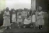 Uppträdande av Roland von Malmborg på museigården. Publik.