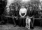 Loka brunn 2 22 juli 1966 Fyra äldre damer och en äldre herre sitter utomhus på bänkar och stolar i kurorten Loka brunn. I förgrunden syns blommor och en stor jättelik kruka.