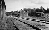 Österbybruk station. Dannemora-Hargs Järnväg, DHJ. Öppnades den 2/1 1878 och lades ner den 1/8 1970. Stationen byggdes1918 och samma år förlängdes bangården, som då fick två nya spår.