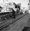 Skeppsbron i Karlskrona omkring 1880-90talet. Den vita byggnaden t.h. om den första båten är Blekinge kustbanors stationshus, byggnaderna längst till höger är handlare Thorsells magasin.