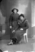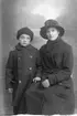 Två kvinnor hos fotografen. Den vänstra kvinnan har sorgflor fästat på sin huvudbonad.