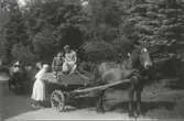 Tre personer, en hund, taxen Björn och en ko, i skogen. Doktor Robert Norström, Örebro, och hans hustru Maria Norström, född Ekström, på utflykt. Maria är dotter till prosten/hovpredikanten Albert Ekström och Sofia "Siffi" Ekström, född Lagerholm. Maria är kusin till Juliana (Julia) Mannerfeldt (född Lagerholm).
