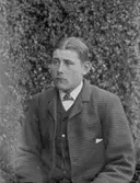 LANTHANDEL MED HÄSTSKJUTS I FÖRGRUNDEN, SANNOLIKT TILLHÖRIG EN HANDELSRESANDE DÅ VAGNEN ÄR LASTAD MED ETT ANTAL KOFFERTAR. 1890-1900.