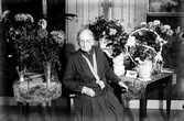 Kvinna omgiven av blommor, Östhammar, Uppland 1952