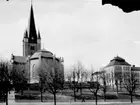 Statliga läroverket för flickor på Manillagatan. Oskarsparken i bakgrunden.