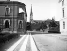 Skara, Järnvägsgatan, läroverket och domkyrkan.