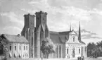 Teckning av Domkyrkan från sydost, på trä av Otto Mankell.