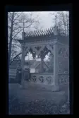 "St. Vessinge" Grupporträtt taget utanför ett hus, vinter eller vår.