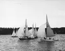 Sommaren 1945 besöktes KSSS av ett antal officerare från engelska flottan, armén och flygvapnet i Kiel och Hamburg, som deltog i seglingar i 5m- och starbåtsklassen. Se KSSS årsbok 1946 s 100 f (fotografiet återgivet på s 100). På bilden ses fr v t h Captain Denham, Lieutenant Commander J. Ch. Grattan, Lieutenant Commander Wicks, Harry Nyström med hustru Märtha (f. Svensson) samt Commander Hopkinson, den brittiske lagledaren. Harry Nyström var ägare till 5m-jakten 5-S77 SJUTJUSA, som gästerna fick låna.