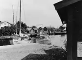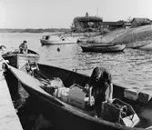 Med fiskebåten SM 154 transporteras posten från Stavsnäs den 2 timmar långa sträckan till Möja. I fonden Bergs brygga på Möja.