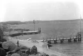 Enligt Bengt Lundins noteringar: "Ammenäs. Badande barn vid brygga".