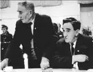 Ad Arne Rosén, Postgirots dataavdelning, berättar för bl a generaldirektör Hörjel, längst t.h., och talman Henry Allard om datatekniken.