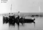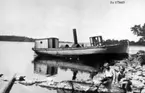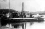 Ett dystert minne - kapten Jägerbäcks bro har drivit bort med strömmen, då en förtöjning släppt. Bogserbåt 1 i vattnet.