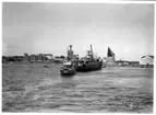 Enligt text som medföljde bilden: "Lustjakt bogseras."