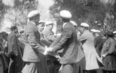 Oscar Montelius talar till studenterna på vårfesten, Uppsala 1914