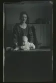 "Bie" En kvinna poserar med ett litet barn sittandes i sitt knä.