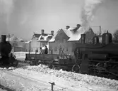 Växjö bangård. I bakgrunden VTJ lokstall. Blandade rälsbussar. SJ Y01t 492 främst UCo4t på Q37
