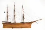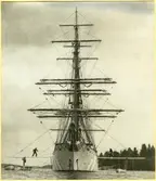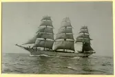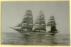 Bilden visar skeppsgossefartyget Jarramas med satta segel till sjöss från syrbordssida.