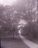 Grusvägen som går mellan gräsmattan och dammen. Gunnebo slott, juni 1990.