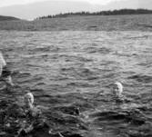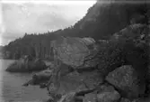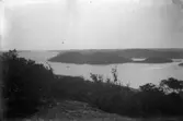 Text som medföljde bilden: "1950 No. 9. Utsikt öfer Gullmarsfjorden från Röds Gård i Foss socken, vid sjöstranden."